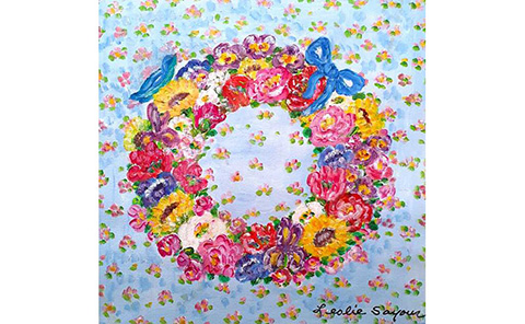 『ピンクアンドホワイトフラワードリース』レスリー・セイヤー